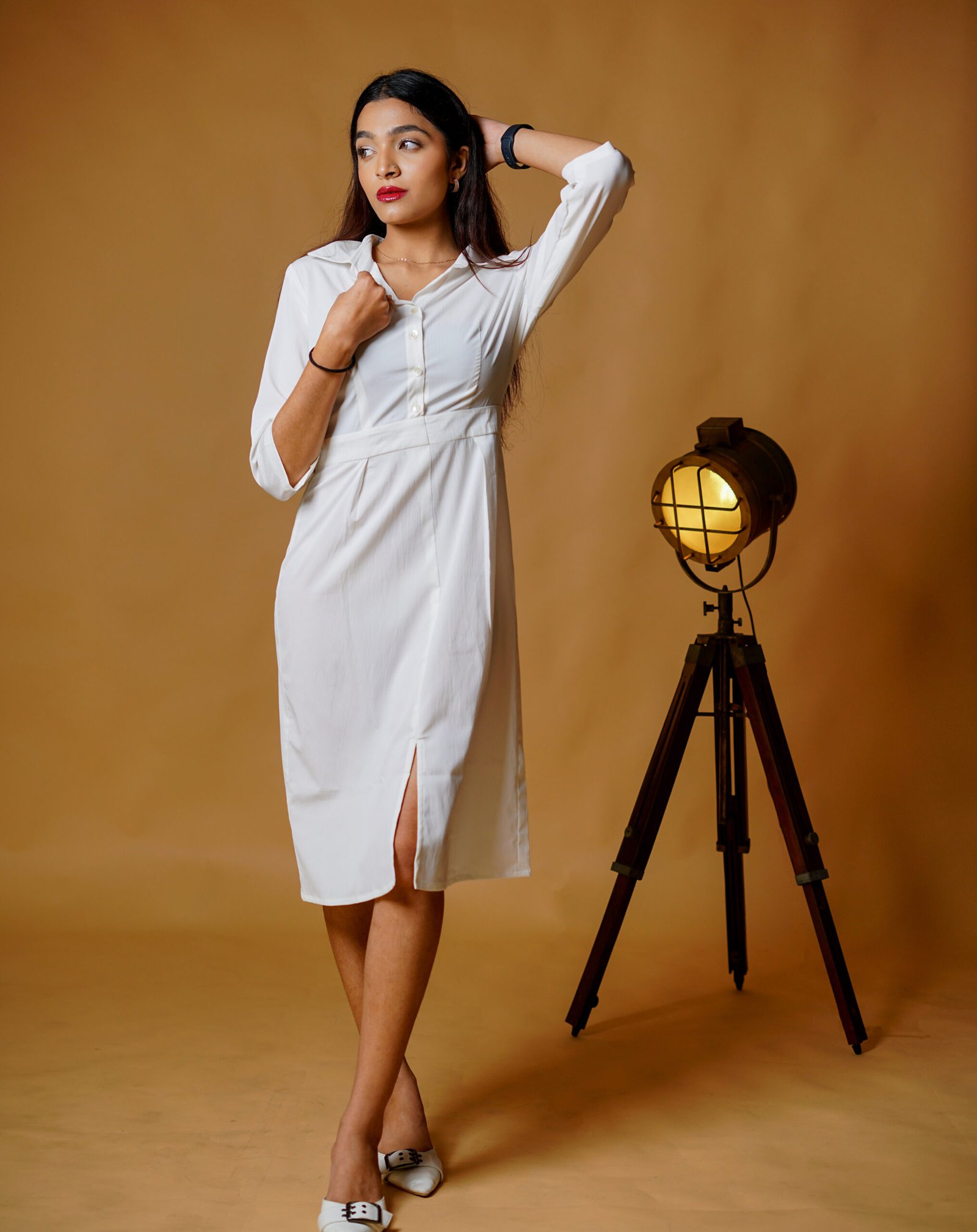Embrace breezy summer elegance with the Cloudside Fit & Flare Shirt Dress by KrazyThread. Crafted from crisp, lightweight cotton–poplin (~120 GSM), this dress brings the clean sophistication of a shirt with the flowy charm of a flared skirt. It features a pointed collar, full button-front placket, short cuffed sleeves, and a removable self-tie belt to define the waist. The A-line skirt flares mid-calf, offering graceful movement and timeless appeal—perfect for office days, weekend brunches, and garden soirees.