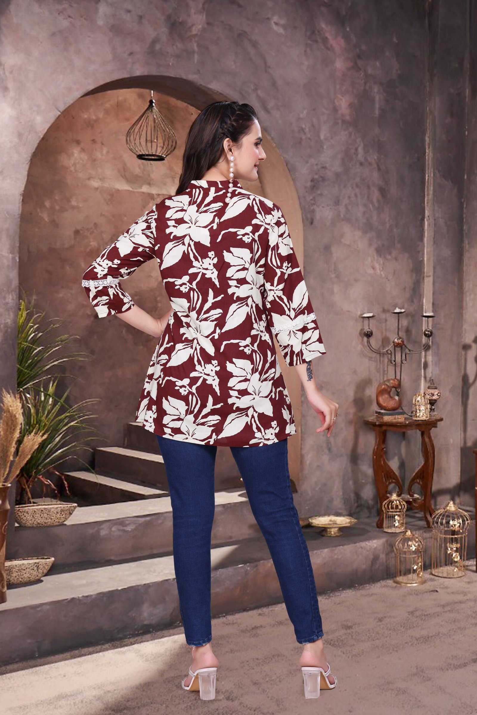 Maroon Elegant Rayon Top with Schiffli Lace Detailing